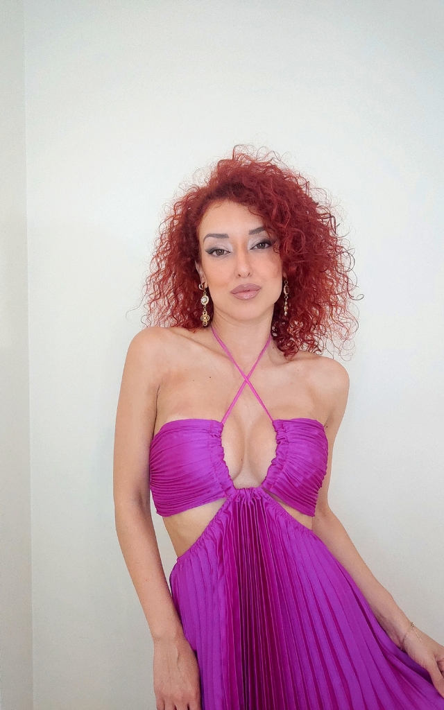 Πλισέ φόρεμα μακρύ σε χρώμα ματζέντα με τρείς διαφορετικούς τρόπους δεσίματος στον λαιμό