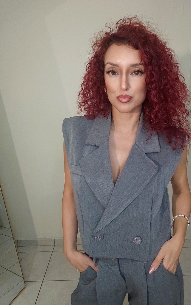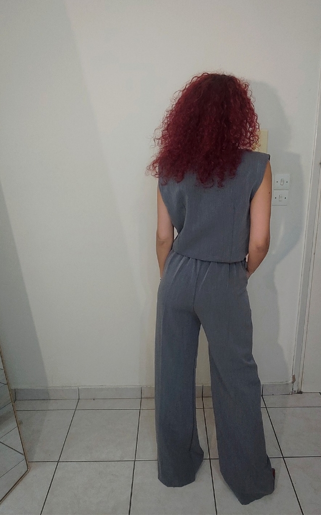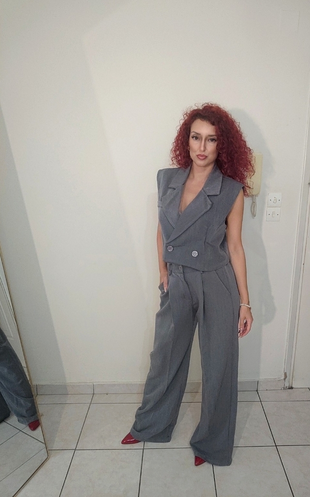 Σετ γιλέκο cropped και παντελόνα (γκρί)
