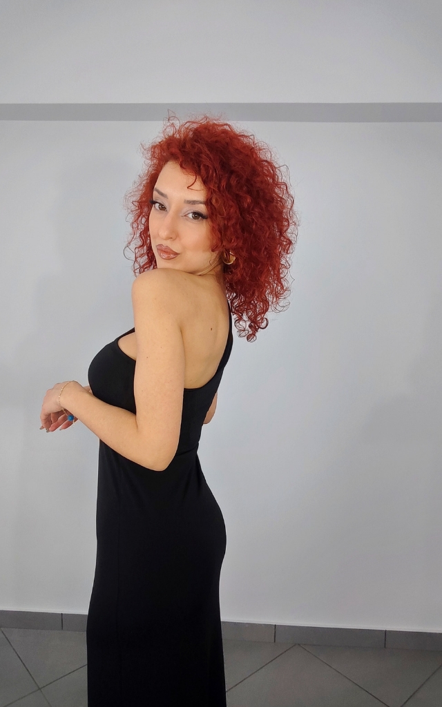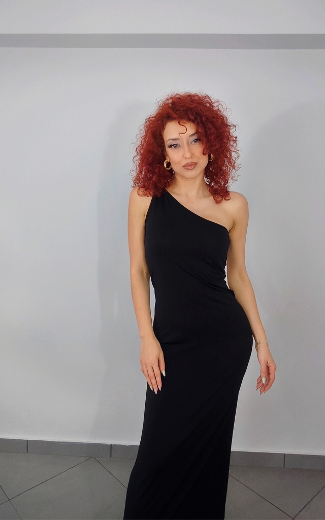 / Φόρεμα αμάνικο με έναν ώμο (Μαύρο)