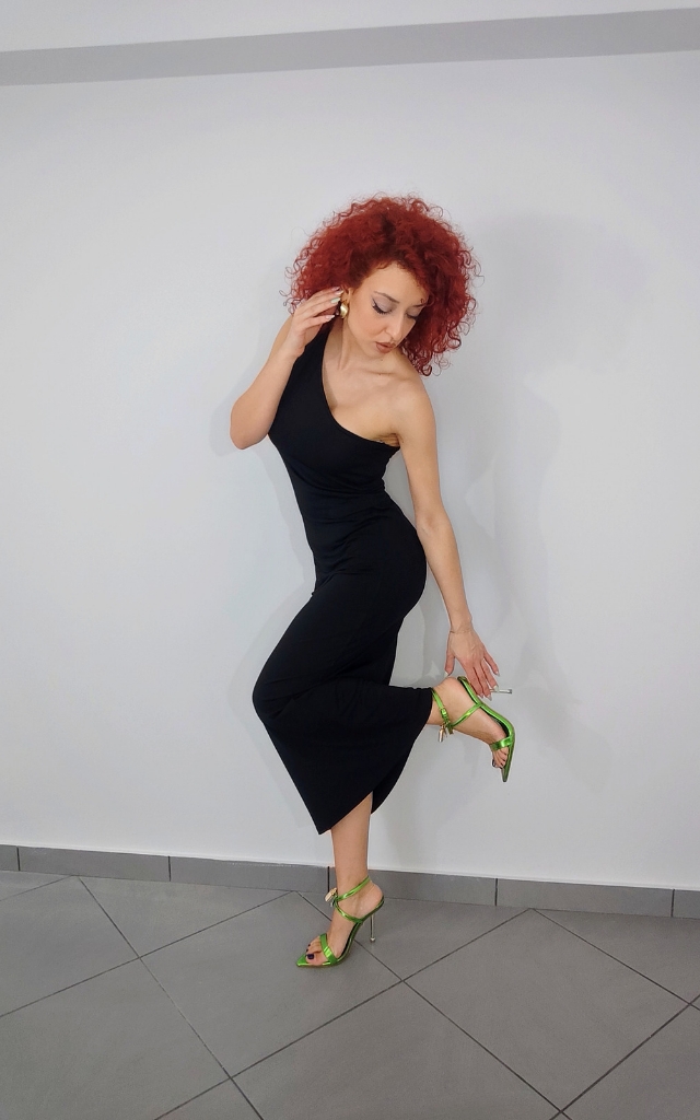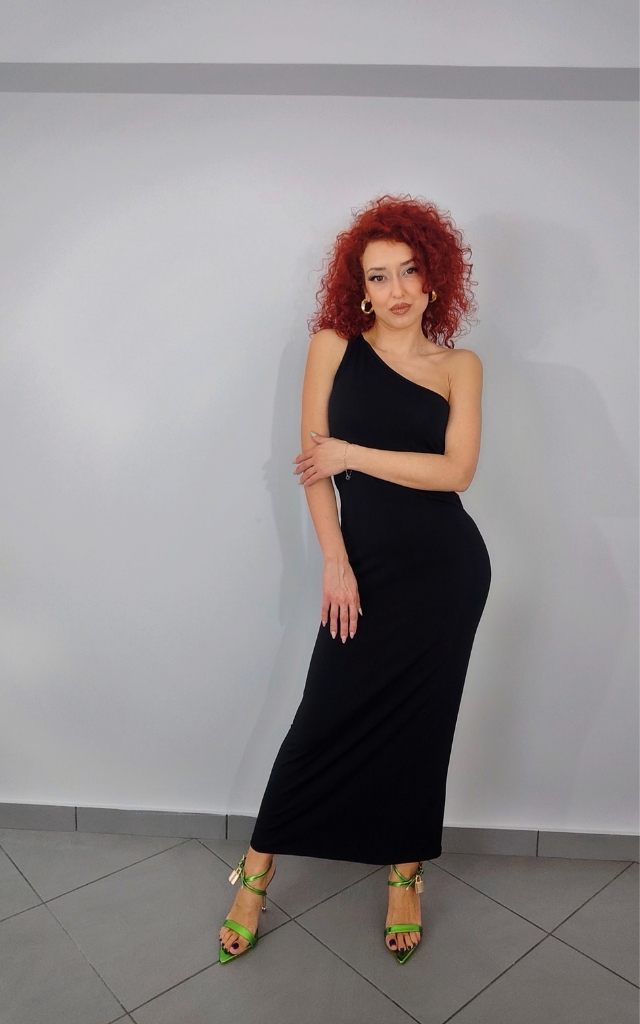Φόρεμα αμάνικο με έναν ώμο (Μαύρο)