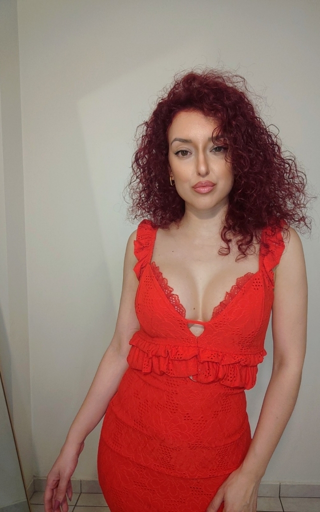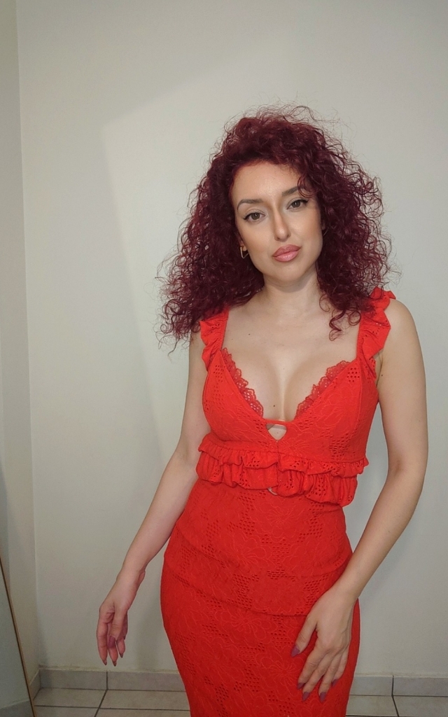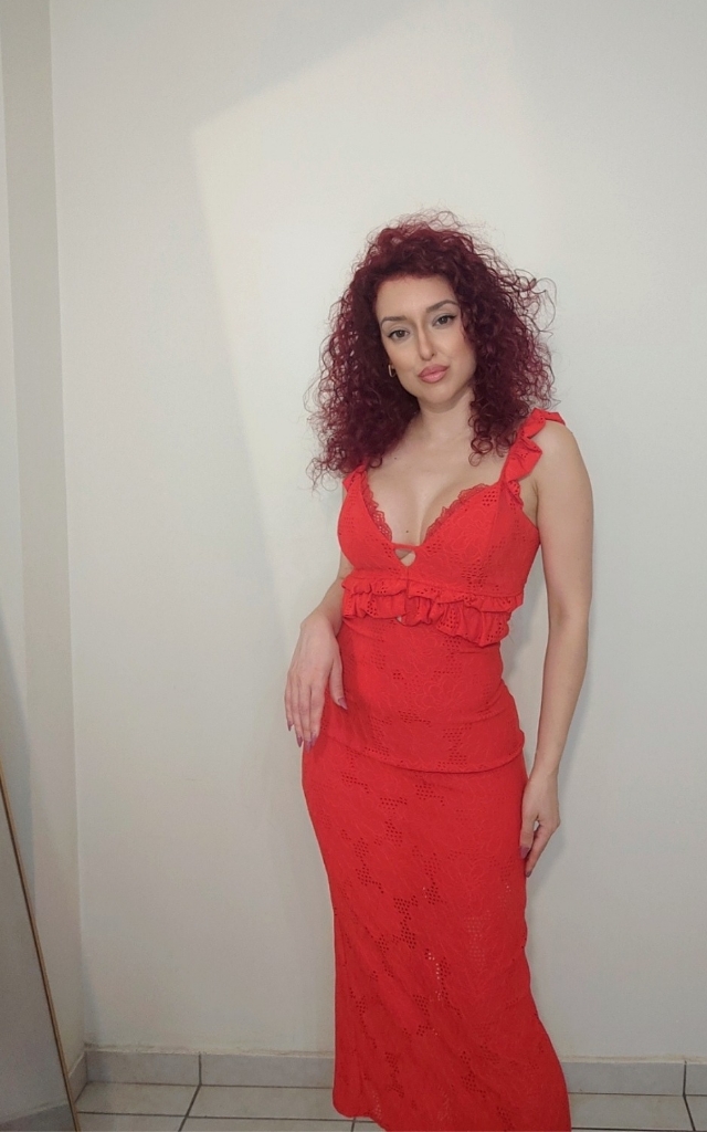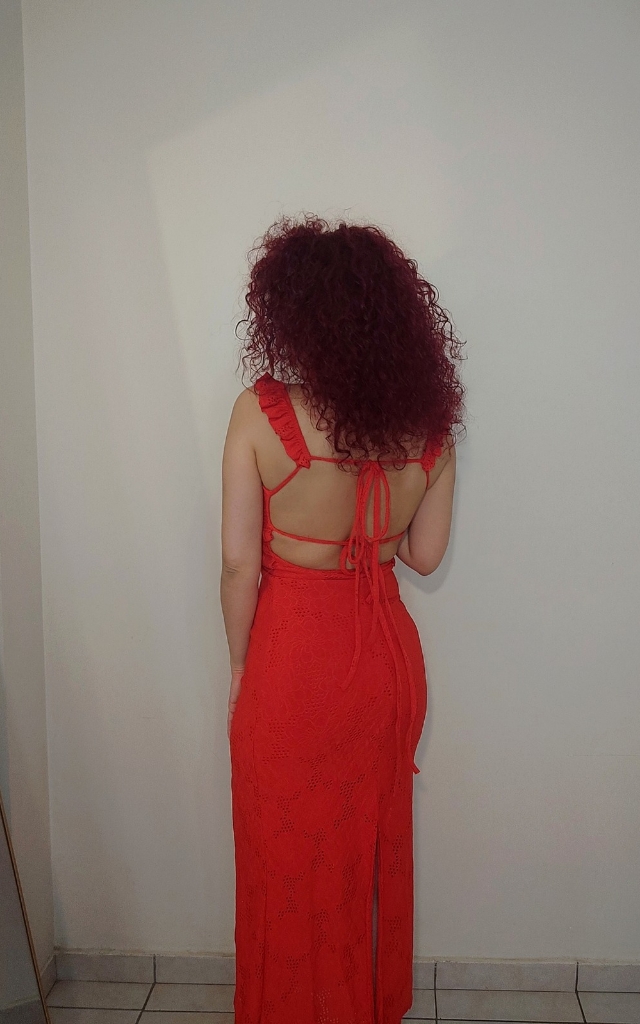 Εξώπλατο μακρύ φόρεμα με κέντημα σε κοκκινο χρώμα και One size